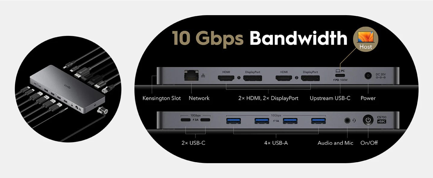 Works via a USB-C 3.2 Gen 2x1 Port or Higher