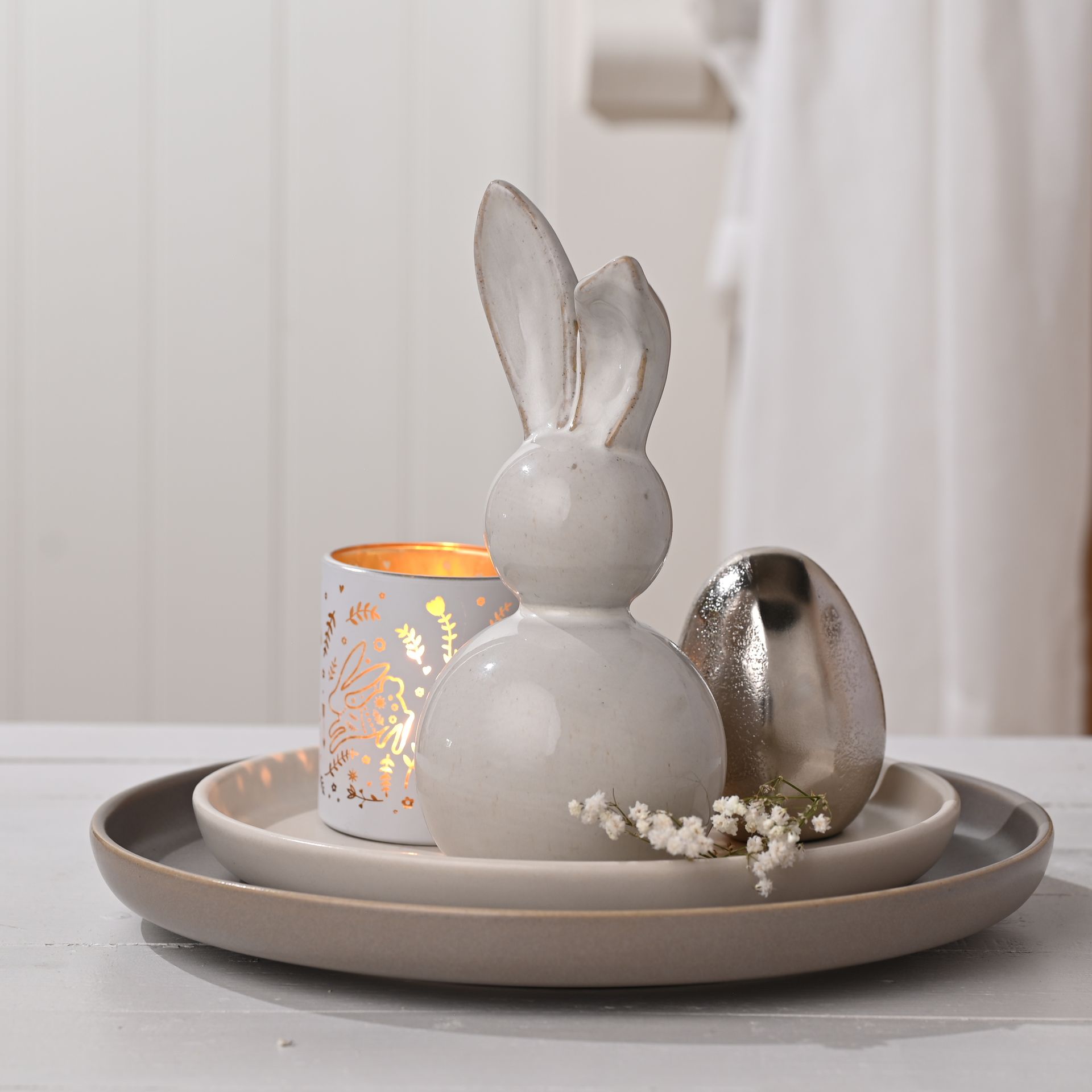 - Introducing the Eggs-traordinary Gifting Grey Ceramic Bunny Decoration, a charming addition to any retail collection.