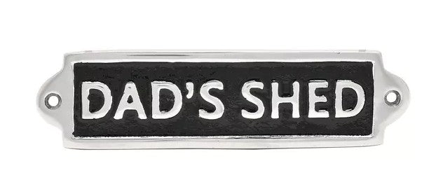 • Crafted from sturdy metal, the sign proudly spells out ‘DAD’S SHED’ in bold silver colour lettering against a black background. A great birthday, housewarming, or Father’s Day gift that will add fun and personality to a home or in-store display.