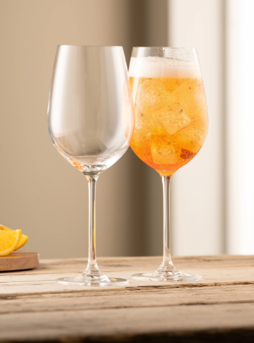 Whether you're enjoying a classic Aperol Spritz on a sunny afternoon or experimenting with elderflower and prosecco, these glasses enhance every sip. The wide bowl allows ice and garnishes to shine, while the refined silhouette brings sophistication to your home bar or outdoor entertaining.