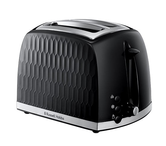 Keep your kitchen on-trend with the Honeycomb 2 Slice Toaster in a Premium Black with a Textured Design. Letting you give your kitchen a makeover without blowing your budget, this toaster not only brings style to your countertop but it also comes convenient features too. Its High Lift Feature lets you lift your toast up to your fingertips so you can safely retrieve those smaller items, and the convenient Frozen, Cancel and Reheat functions mean you can take care of your every toasting need!
