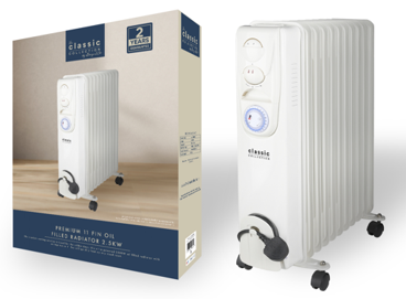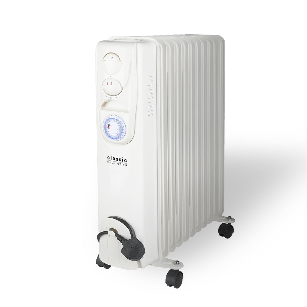 - 11 fins oil rad with 3 Heating Settings 1000W, 1500W, 2500W