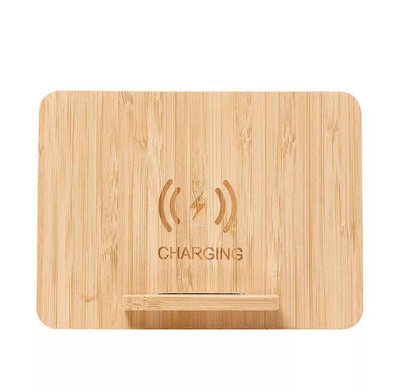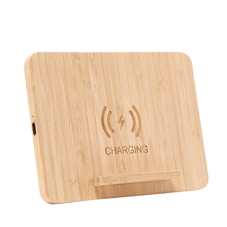 - This rectangular charger offers a compact and stylish solution for powering up devices wirelessly. The brown colour of the bamboo adds a touch of natural beauty, bringing a sense of warmth to a workspace or bedside table.