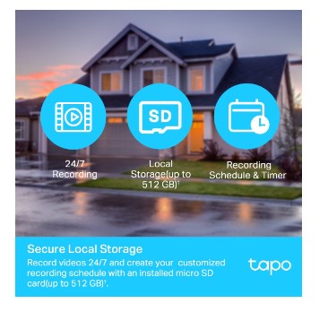 - Flexible Storage Choices-Save recorded videos to an installed microSD card(up to 512 GB)†, or use Tapo Care** cloud storage service.