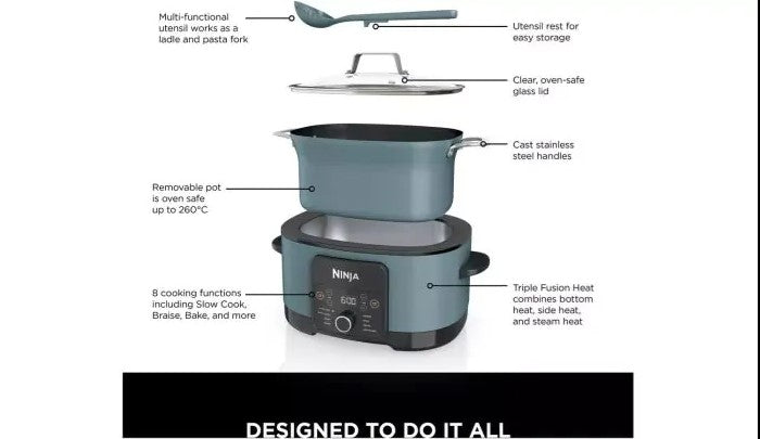 Ninja Foodi PossibleCooker is 5x more powerful than conventional slow cookers. Unlike traditional slow cookers which only use side heating elements, Triple Fusion Heat combines heating elements in the sides and base with steam heat to unlock even more cooking options – so you can also sear, sauté and simmer hearty meals to share, just like you would on the hob. Cook faster than conventional ovens*, with no preheat.