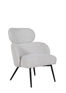 Solas Accent Chair in Ivory – a statement piece that combines modern elegance with timeless comfort. Upholstered in luxurious boucle fabric, this accent chair exudes sophistication and softness, inviting you to relax in style. Its sleek black powder-coated legs offer sturdy support while adding a touch of contemporary flair to the design.