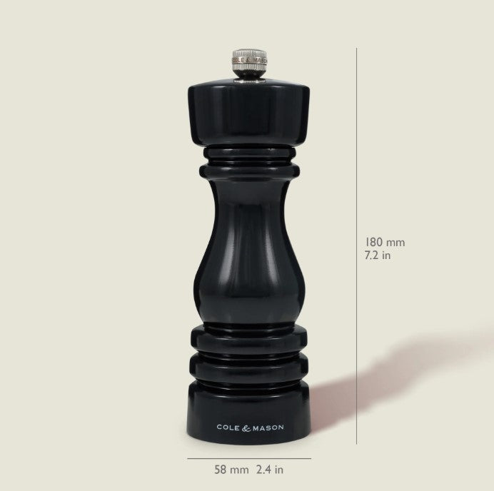 Cole & Mason London 180mm Black Gloss Pepper Mill | H233097