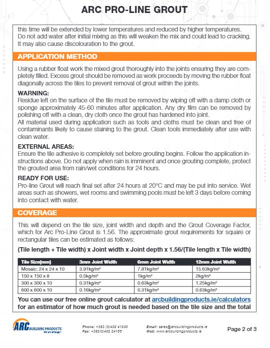 - A highly versatile cement based wall & floor grout containing anti mould technology