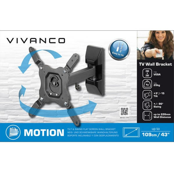Full Motion TV wall bracket for small & medium sized TVs up to 109 cm / 43”