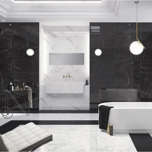 Wall tiles available in white and black gloss finish in a modern 30cm x 90cm size.