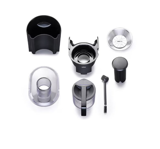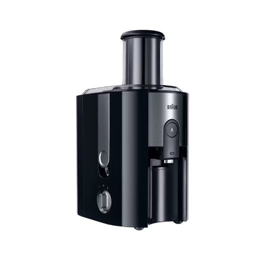 Enjoy your early-morning vitamin boost quickly and easily with the high-performance juicing system from Braun. It only takes seconds, with no cutting necessary thanks to the convenient large feeder chute, which allows you to toss in whole fruits and large chunks. The combination of foam separator and stainless steel micro-mesh sieve removes any foam and pulp, ensuring a very easy separation of foam and juice during the pouring.