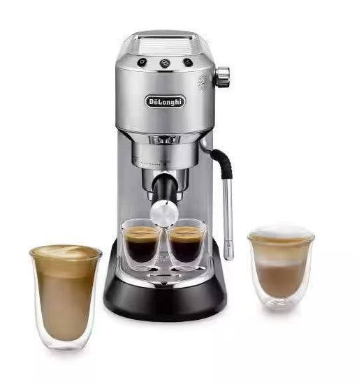 The Dedica Arte manual pump coffee machine adds extra style to the unique and iconic Dedica design. Compact and powerful at the same time, this coffee machine is the perfect complement to your kitchen worktop, for rich morning coffees with no fuss, a silky microfoam texture for your favourite milk-based drinks, and ultimate ease of use and convenience.