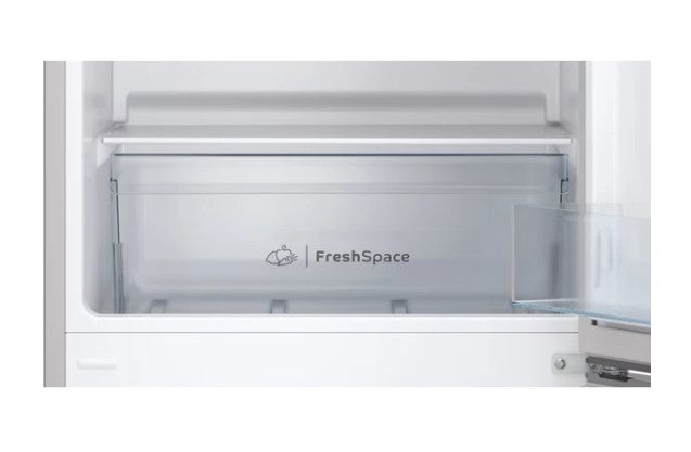 This Indesit freestanding Fridge Freezer features: white colour. Glass shelves with profile fronts, providing robustness and extra safety. Convenient bottle balcony to safely store your bottles.