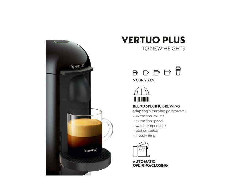 - To each blend, its coffee Brewed coffee now also means tailored coffee with the Vertuo Plus machine. Nespresso's smart extraction system recognises your selected Vertuo coffee pod from the code on its rim, and adjusts the brewing parameters accordingly. To help fully reveal the treasures nestled in each coffee capsule. There's no need to change settings. Simply press the single button and enjoy every coffee, in all cup sizes