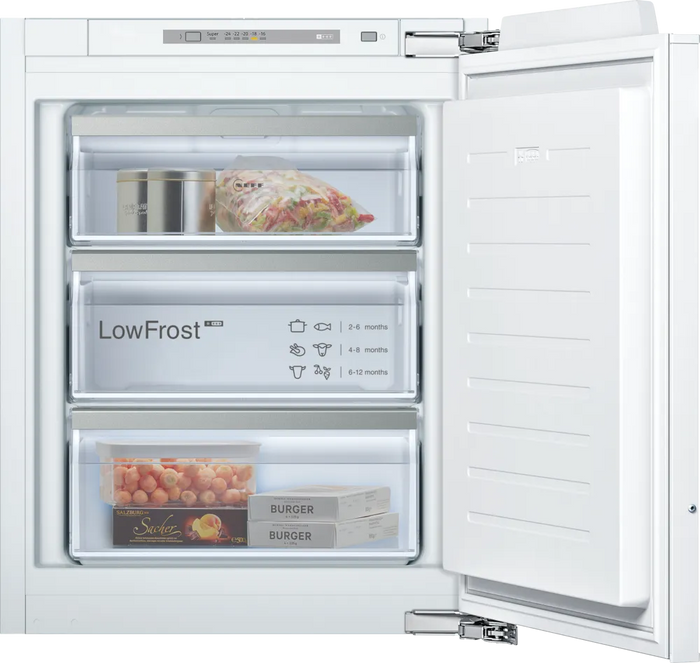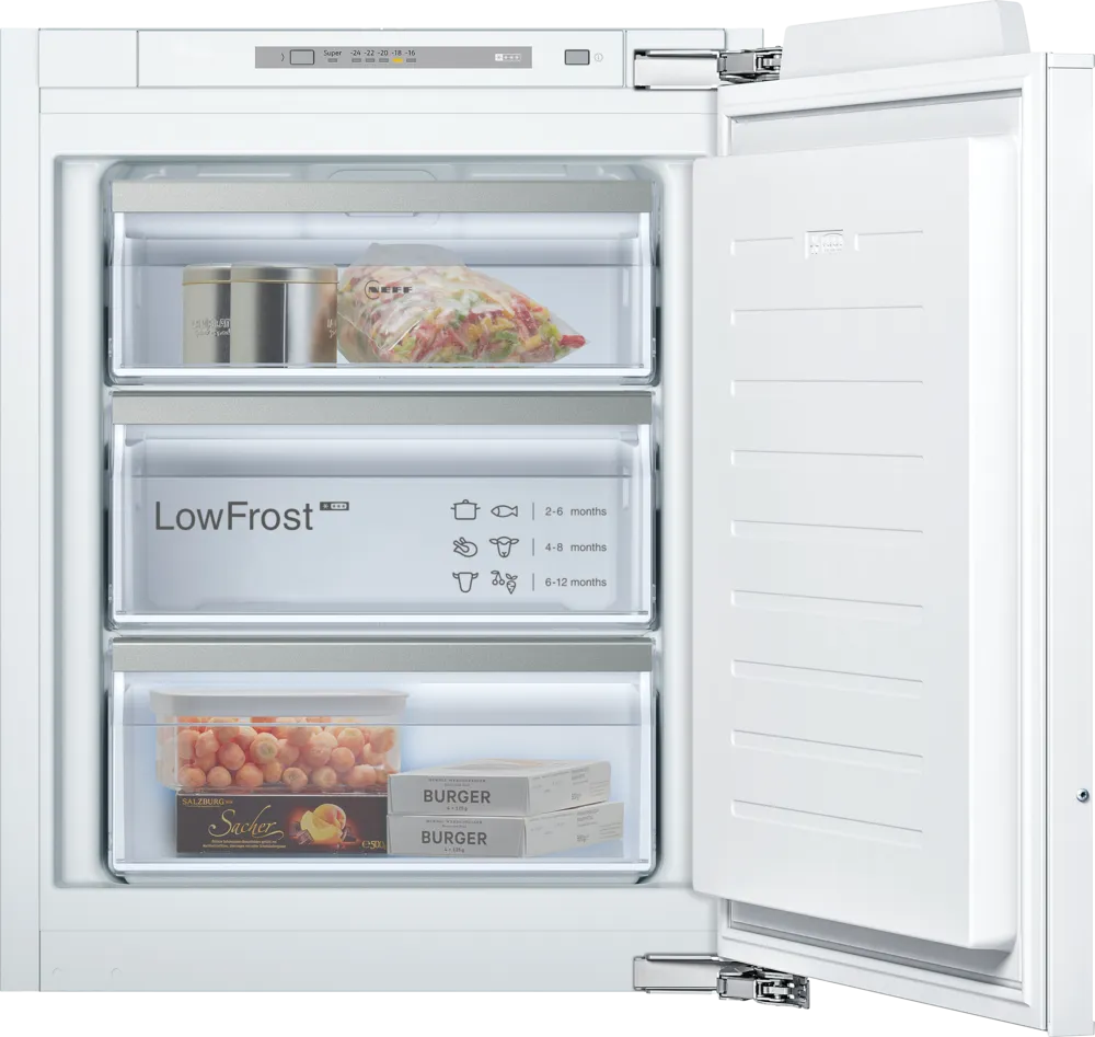 This built-in freezer helps to defrost faster and features a malfunction warning signal in case of increasing temperature.