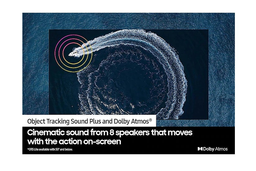 • Object Tracking Sound Plus* & Dolby Atmos®: Immersive sound that follows the action on screen with 8 TV speakers