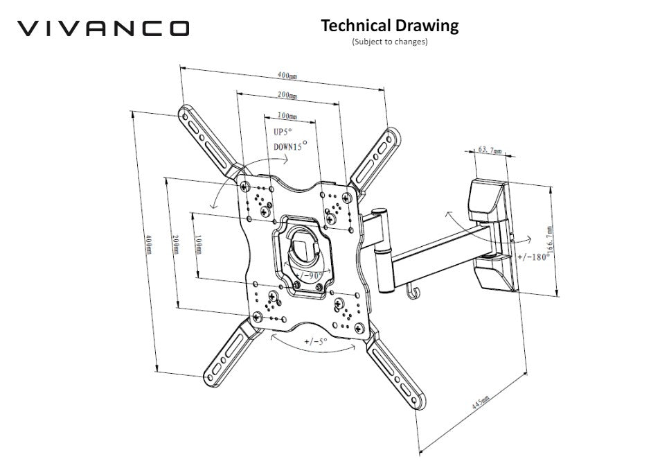 - Max +/- 90° swing radius (max radius for screen width smaller 890mm only)